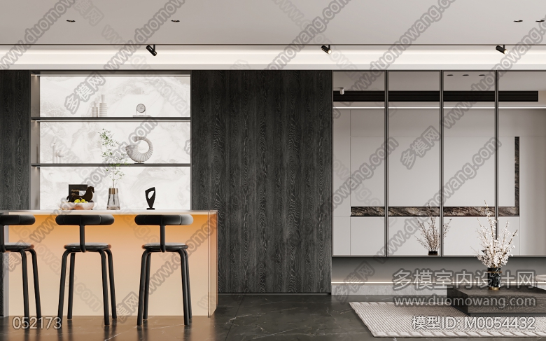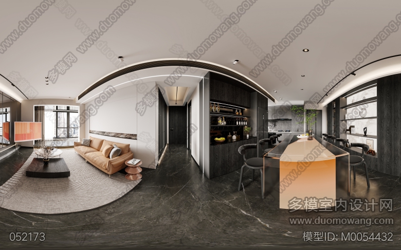 家装现代客餐厅一个全景四张静态+改图一次 ID:M0054432