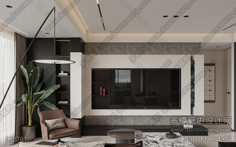 现代极简客餐厅加主卧赠静态 ID:M0054907
