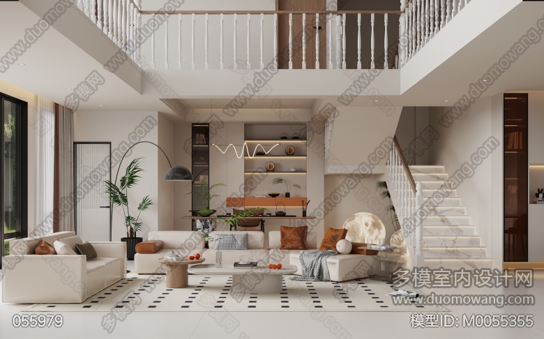 现代客餐厅+厨房+主卧+次卧+次卧 ID:M0055355