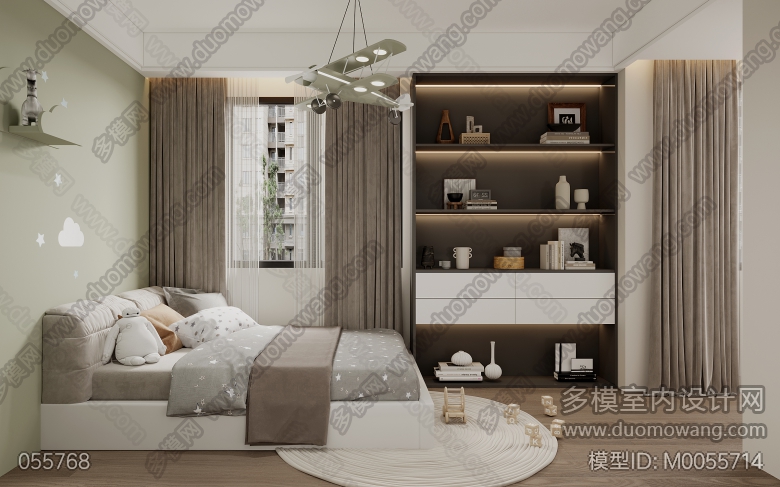 福邸嘉园现代客餐厅全景+3个卧室全景+3个单张+5张特写 ID:M0055714