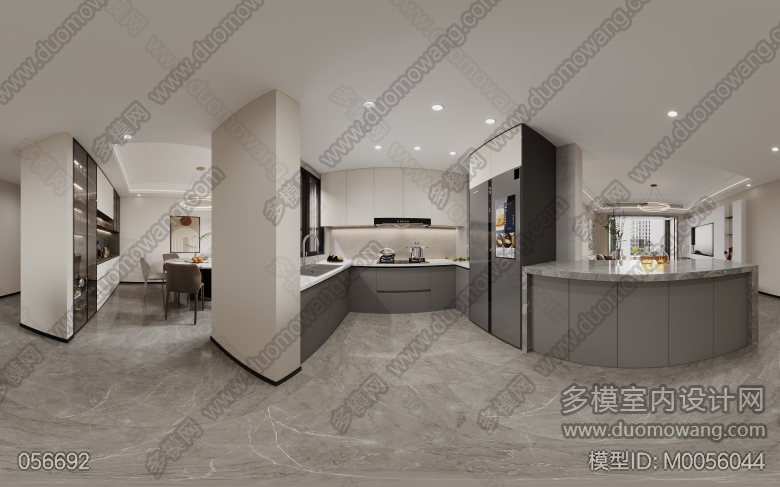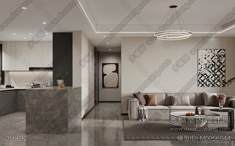 现代客厅+厨房两个全景+2个单张 ID:M0056044