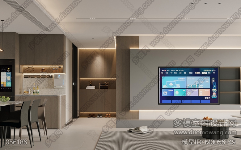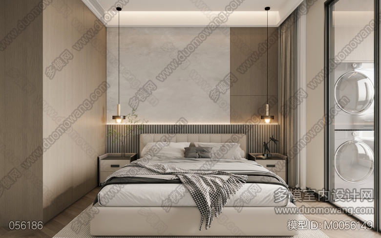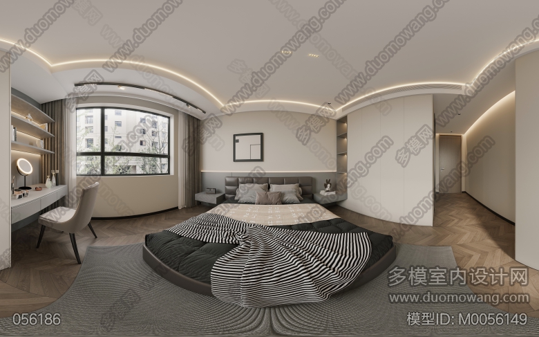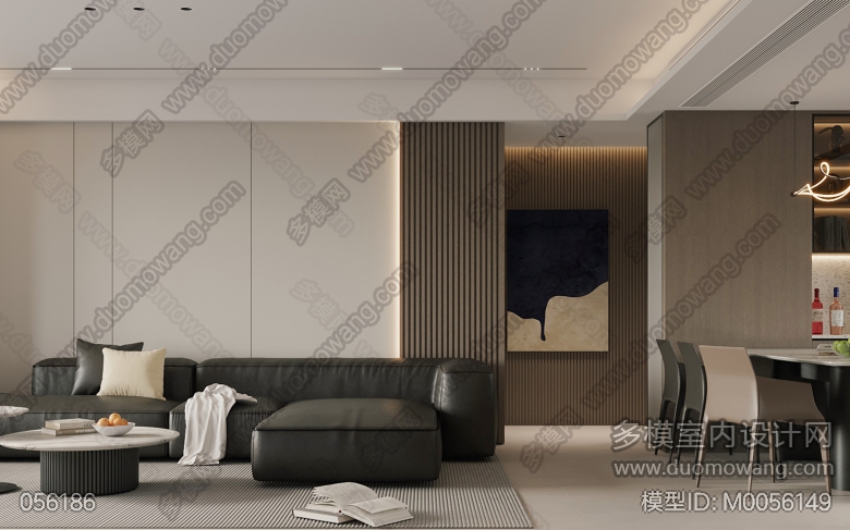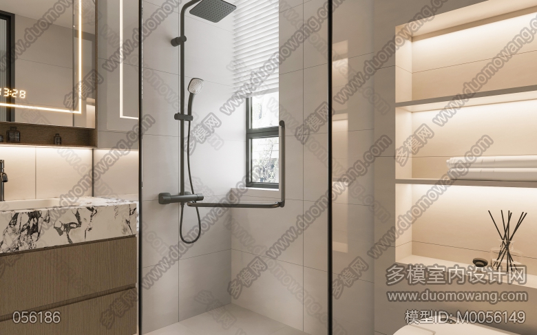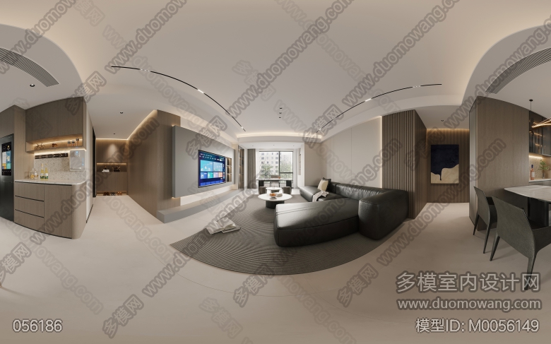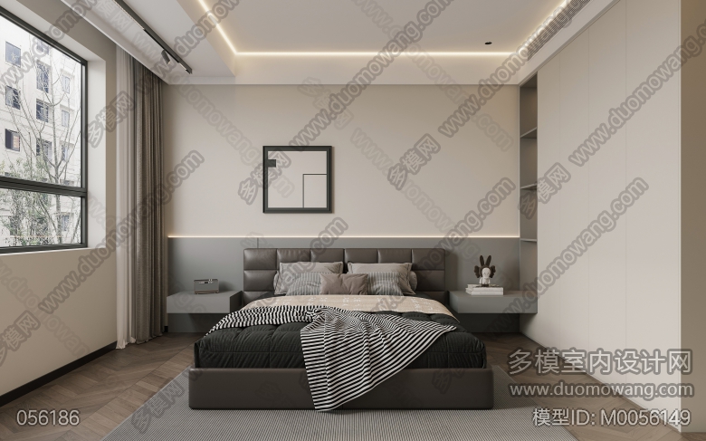 现代客餐厅全景+老人房+次卧+卫生间+主卧 ID:M0056149