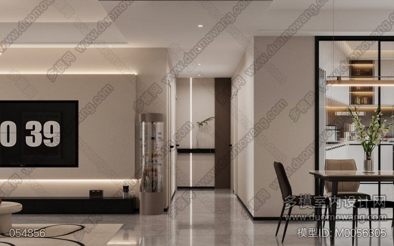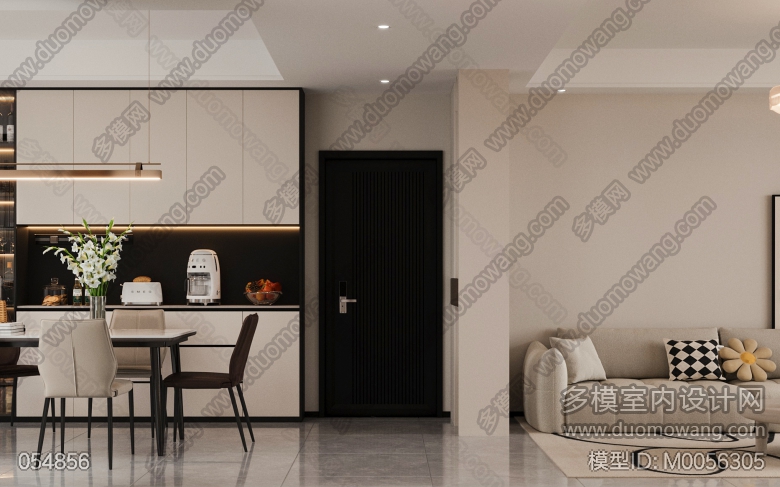 现代客餐厅全景配2个单张加3个卧室单张 ID:M0056305