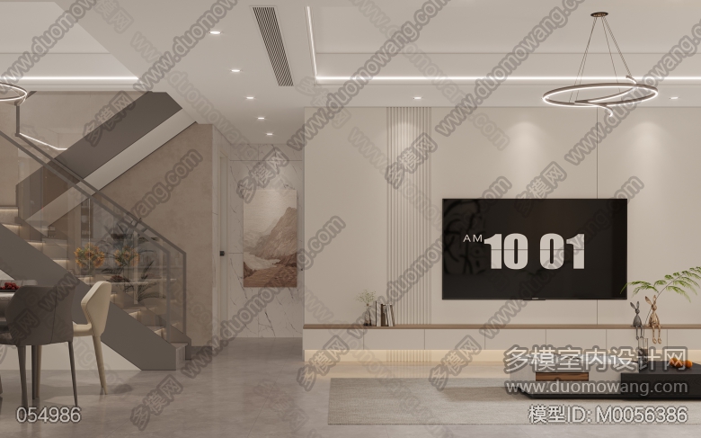 现代客餐厅全景送两张静态单张二层会客厅全景送静态 ID:M0056386