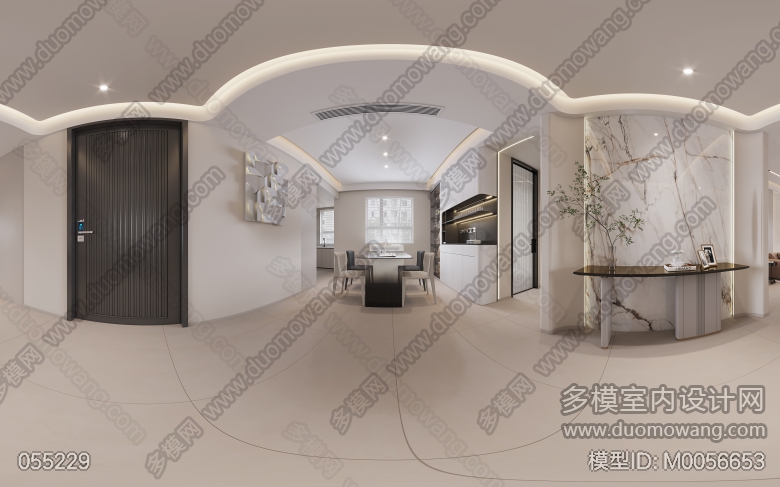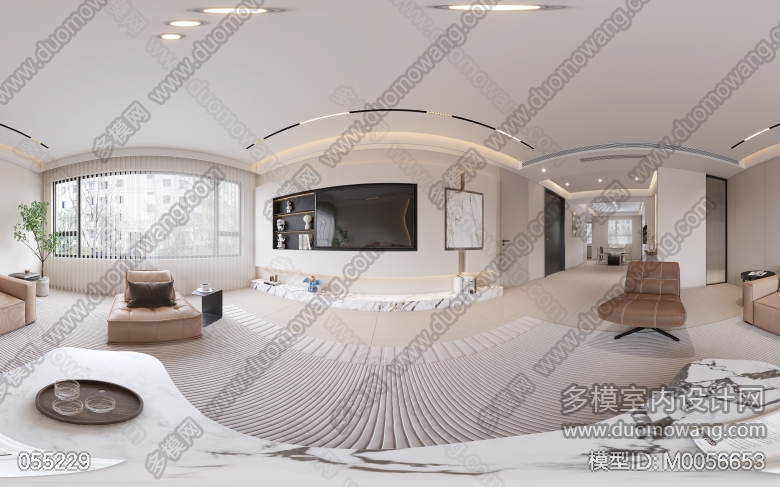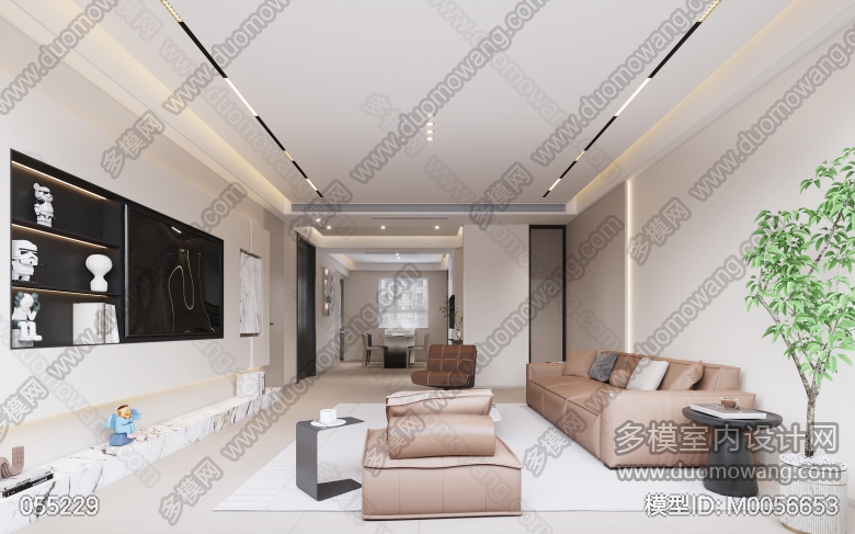 阳光郡洋房150平米 现代奶油风 客餐厅全景送2张单张 ID:M0056653
