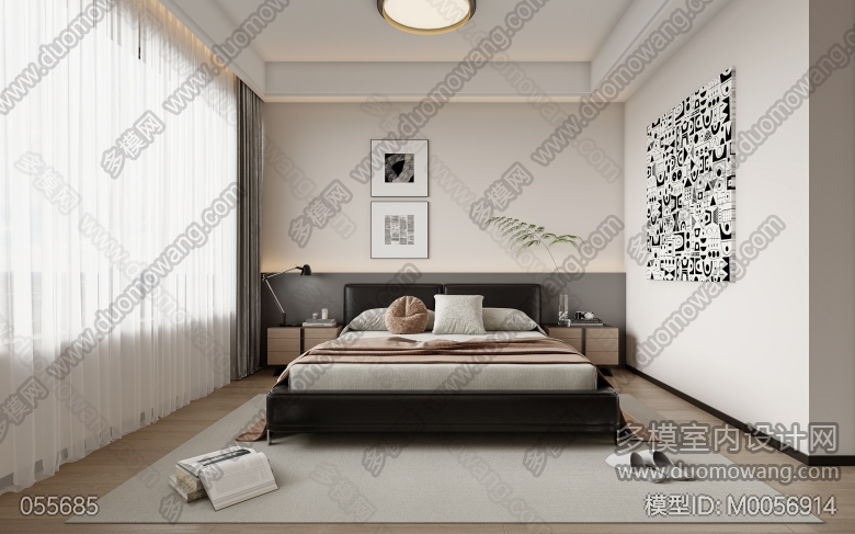 现代黑白灰 客餐厅全景+主卧静态(赠两张静态,厨房看到) ID:M0056914