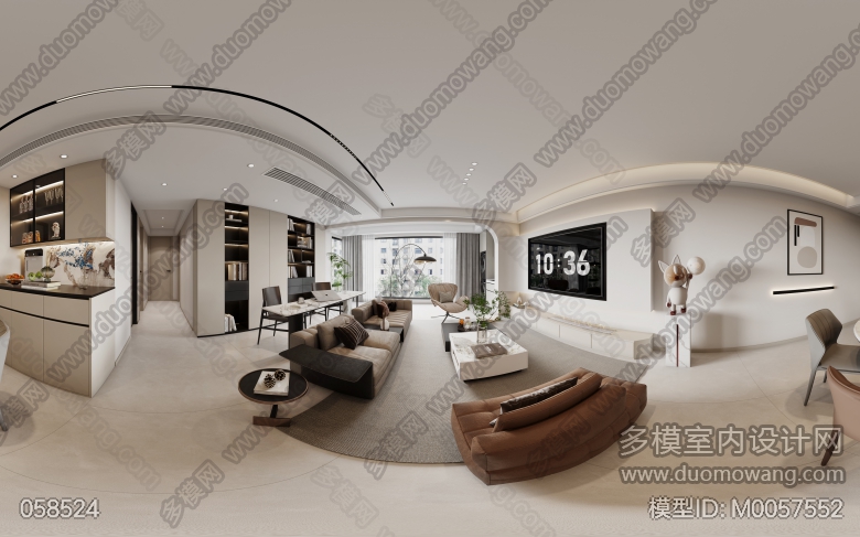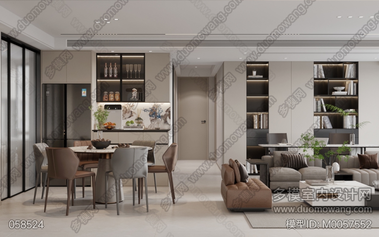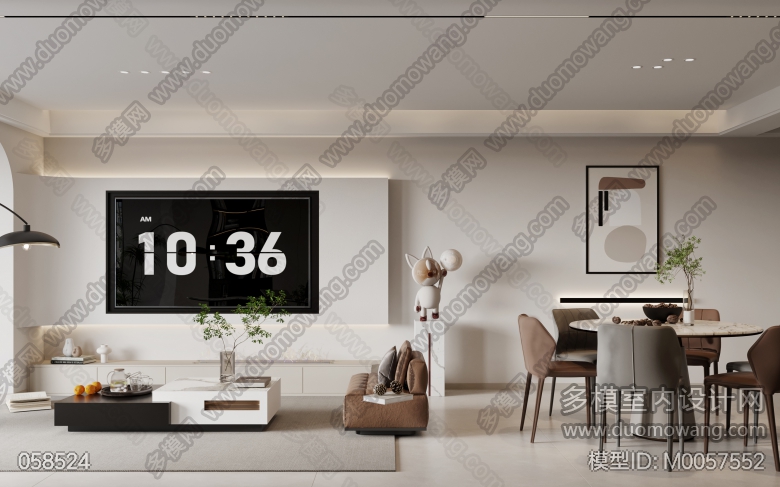 现代简约客餐厅全景加主卧单张 ID:M0057552