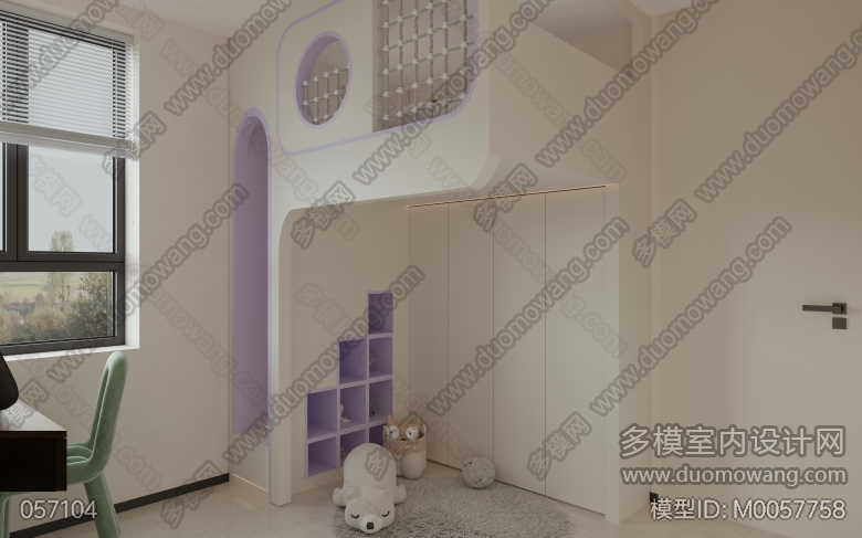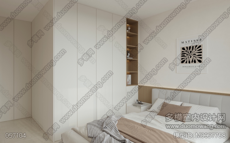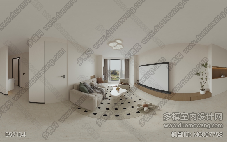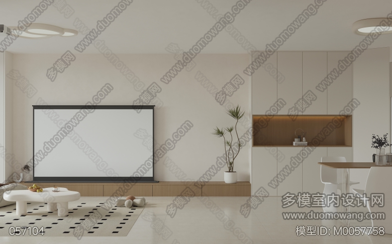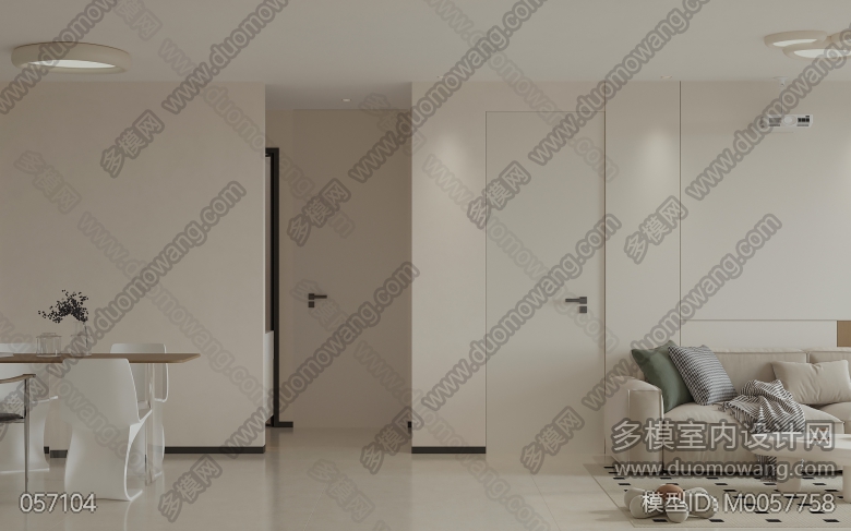 现代奶油日式客餐厅全景,卧室2个单张,送2张静态 ID:M0057758