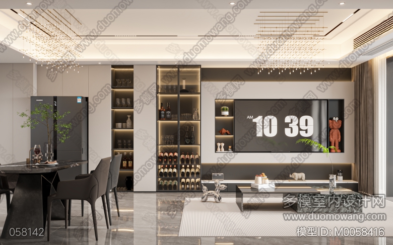 家装现代风格客餐厅1个全景 ID:M0058416