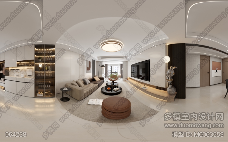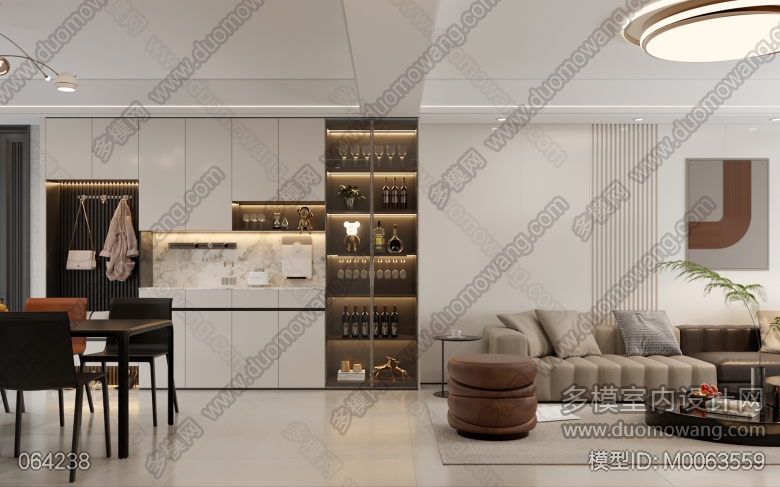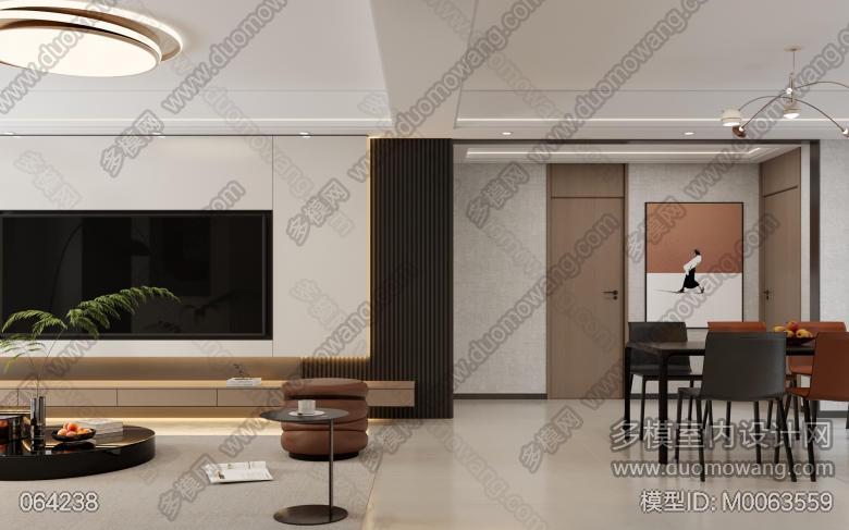 现代客餐厅全景配2个单张 ID:M0063559