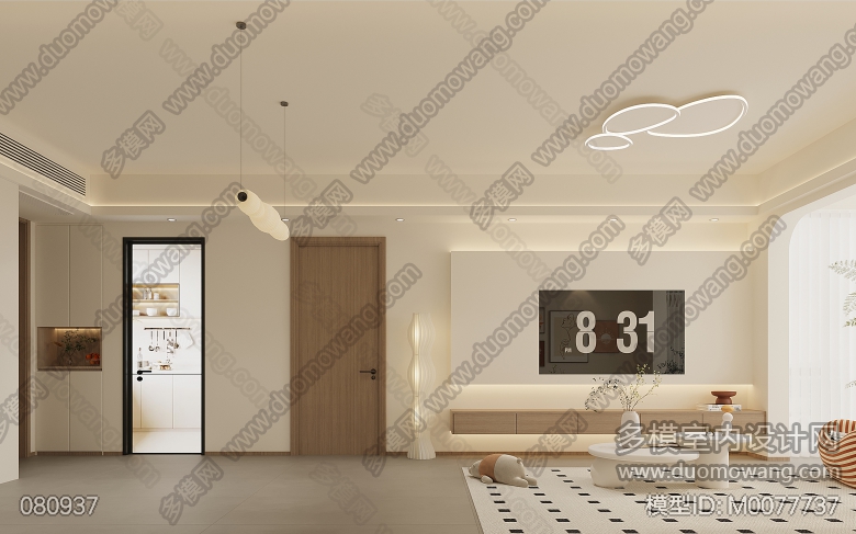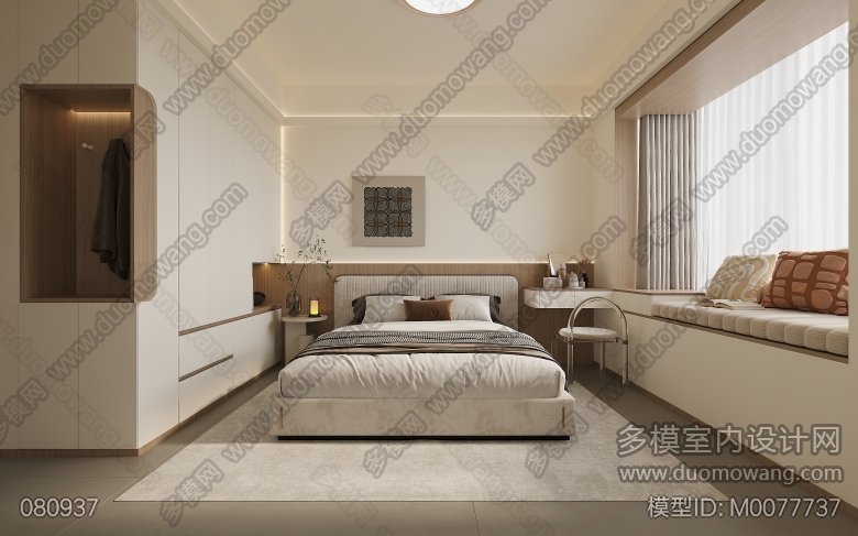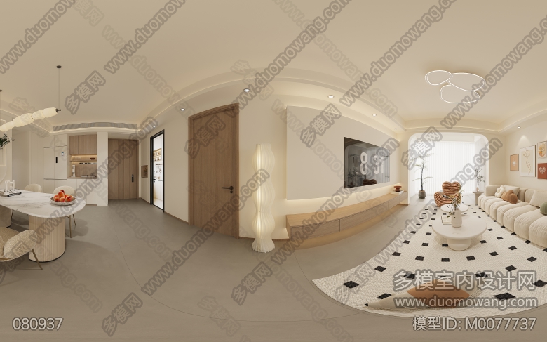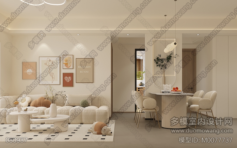 奶油风客餐厅主卧2个全景3单张 ID:M0077737