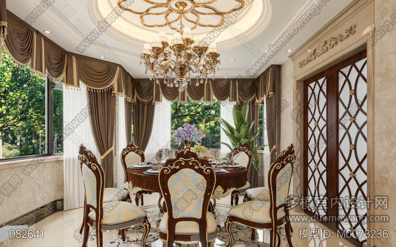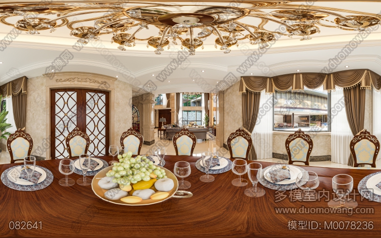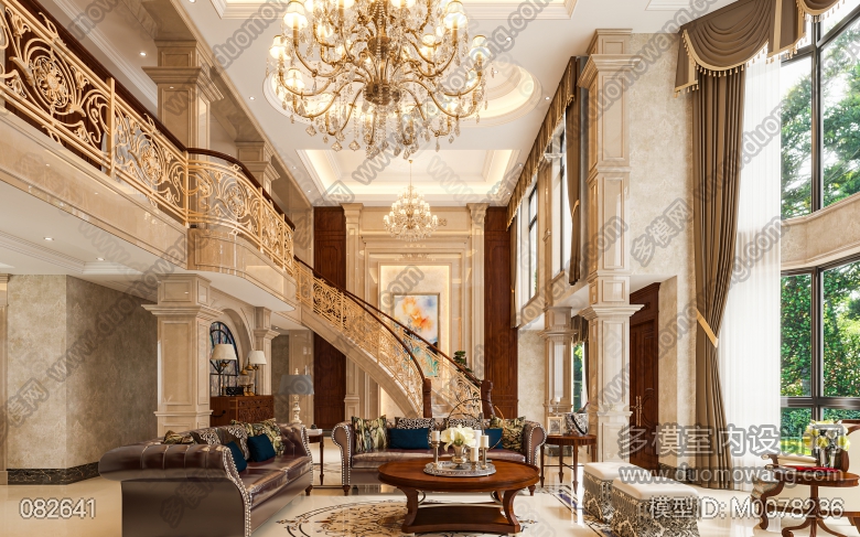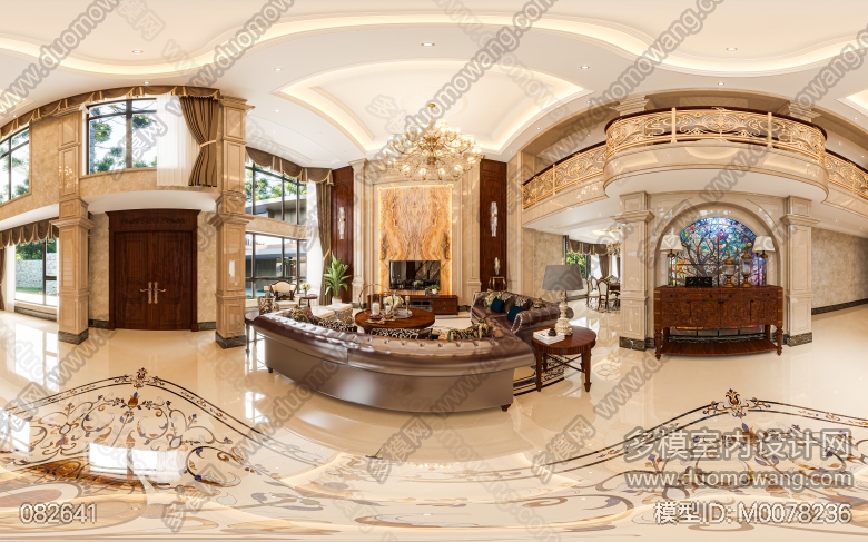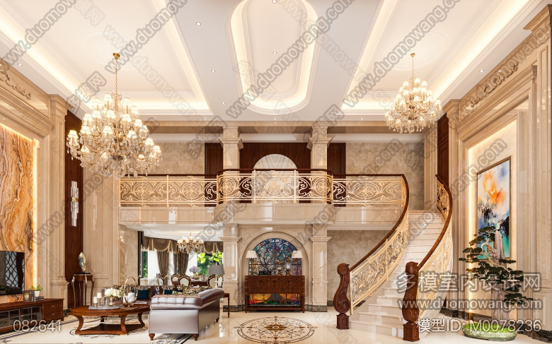 名流府邸挑空别墅客餐厅过道2张全景 ID:M0078236