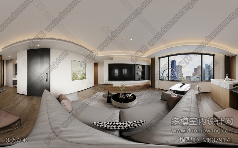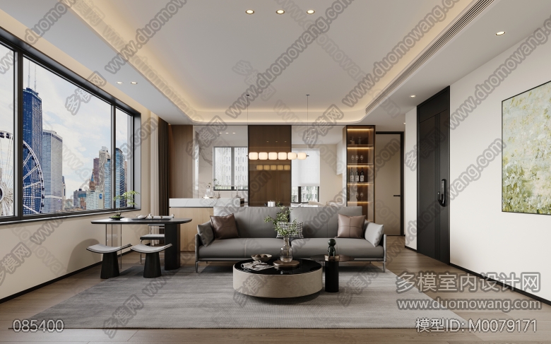 现代原木风一个客餐厅全景 ID:M0079171