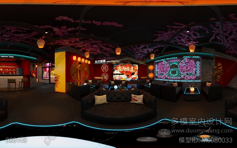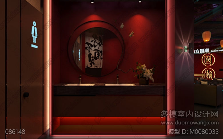 画廊酒吧国潮风室内2个全景,赠送特写2张,卫生间单张, ID:M0080033