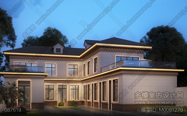 民宿外立面正面一张日景一张夜景透视图 ID:M0081279