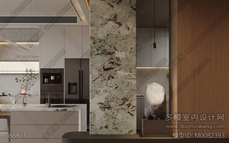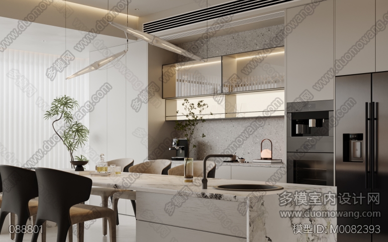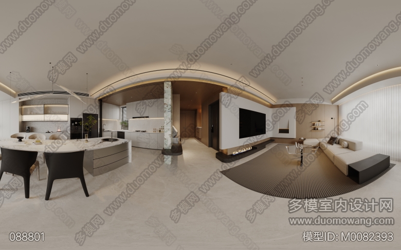 龙湖光年A6上叠现代风格客餐厅带开放式厨房一个全景加2特写 ID:M0082393