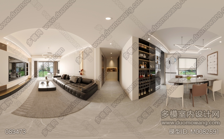 现代客餐厅全景。主卧室静态 ID:M0082591