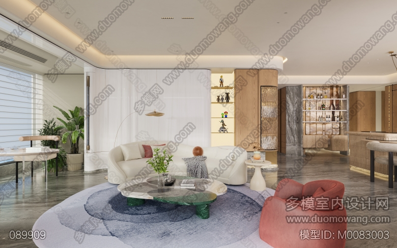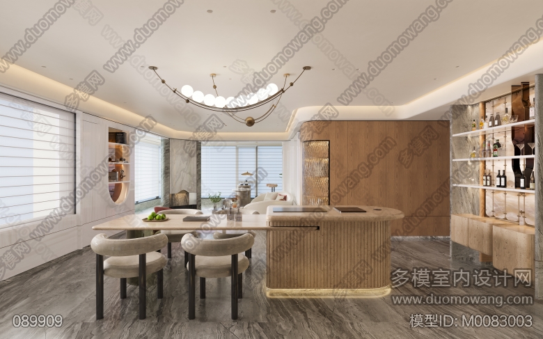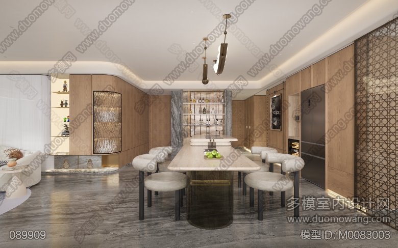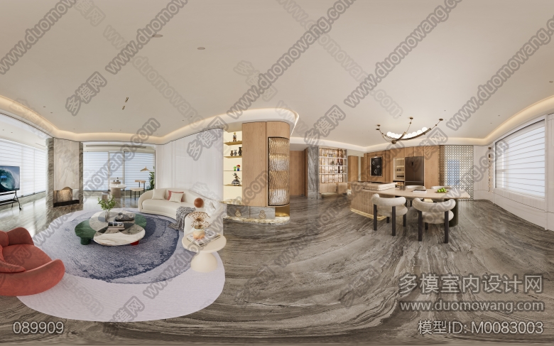 意式轻奢风格客餐厅全景,送三个特写单张 ID:M0083003