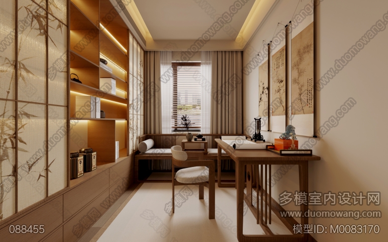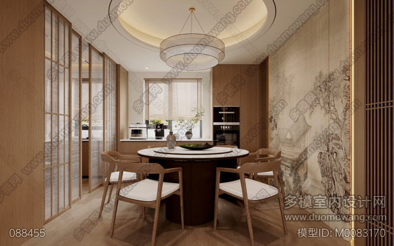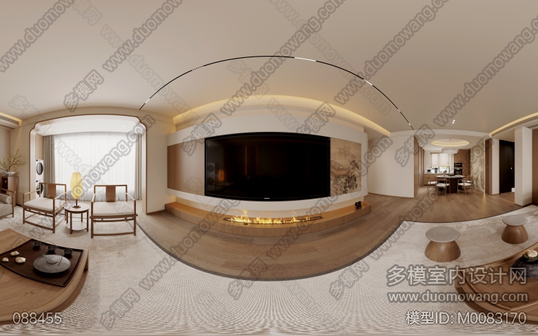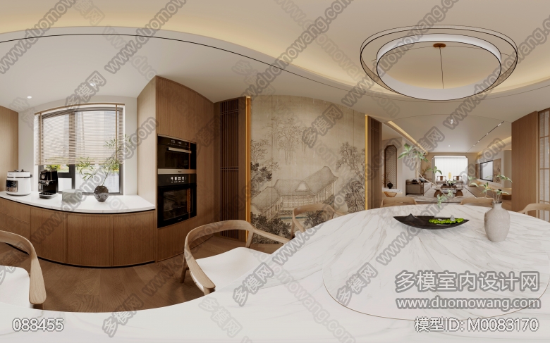 逸豪苑宋式美学客厅 餐厅 主卧 次卧 北卧5个全景 衣帽间 主卫 书房 客卫 厨房 玄关6个单张 ID:M0083168