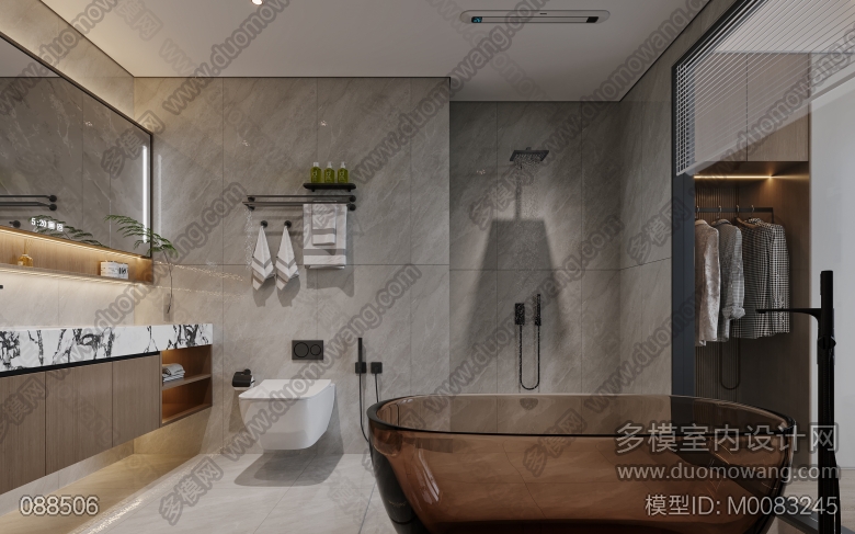主卧衣帽间+主卧+主卧内卫+主卧2+主卧2内卫+卫生间+次卧1+茶室 ID:M0083245