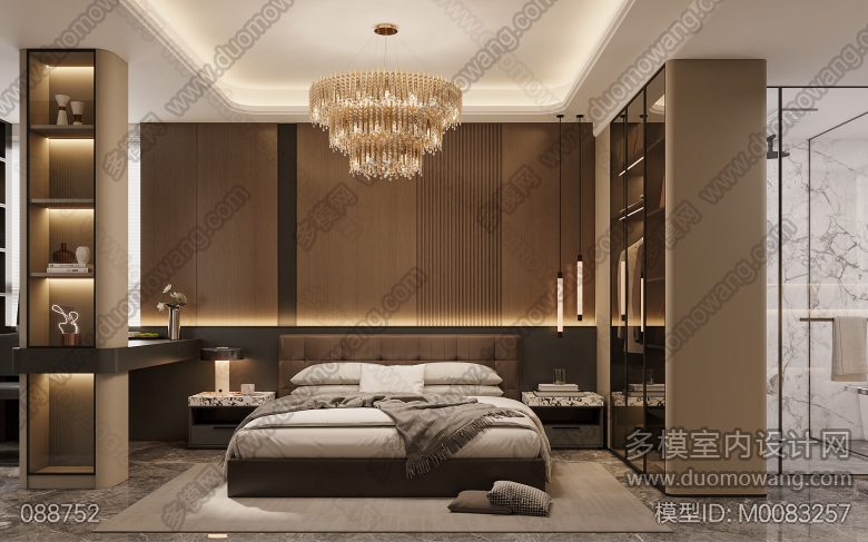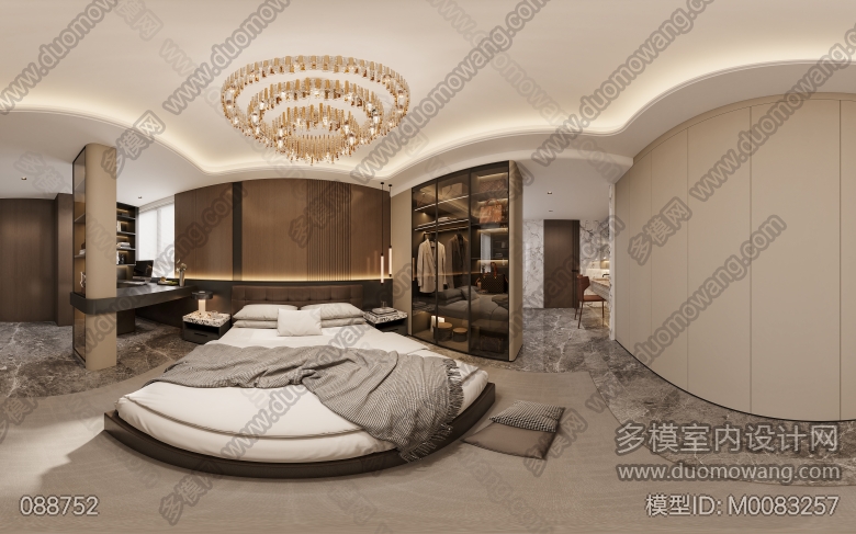 意式轻奢卧室一个全景特写两张 ID:M0083257