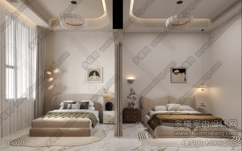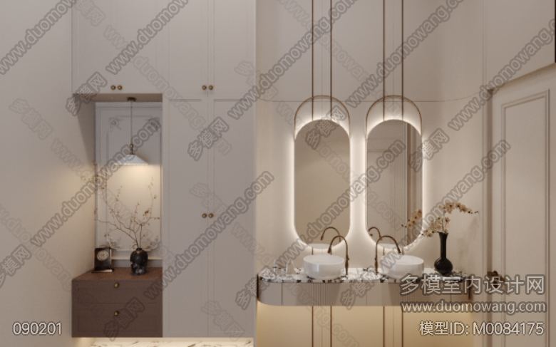 (未出图)法式主卧+次卧+双床房+衣帽间+主卫+公卫+玄关 ID:M0084175