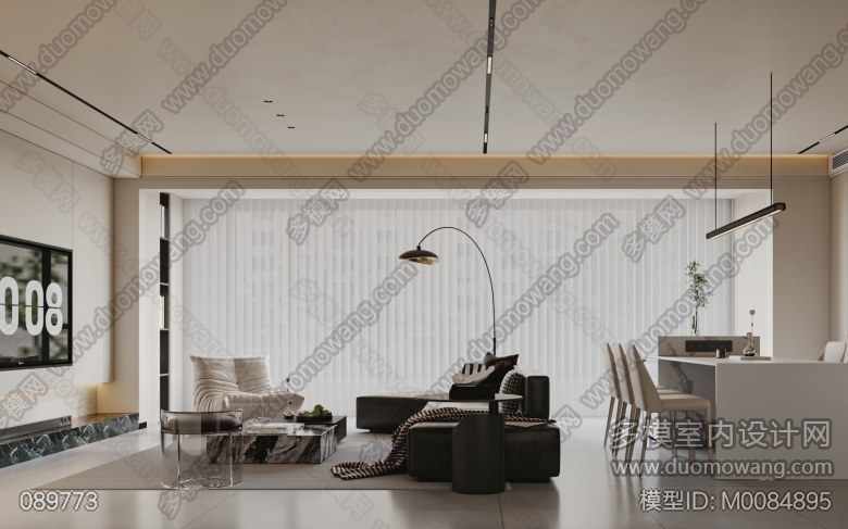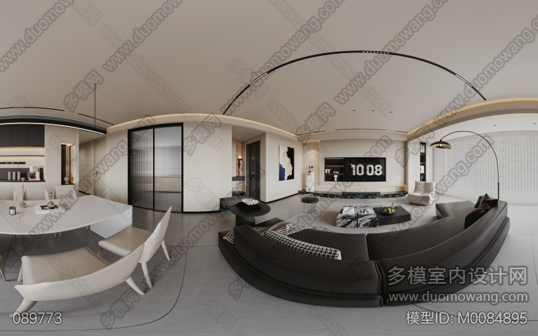 现代客餐厅全景。主卧室静态 ID:M0084895
