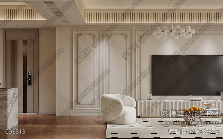 现代法式 客餐厅一个全景(赠两张静态) ID:M0085873