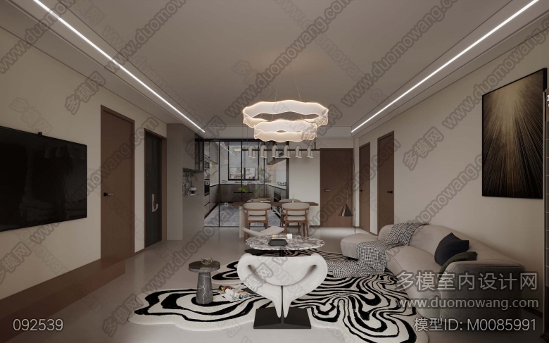 改图 炜赋7-901-现代客餐厅卧室3个全景,送4张特写 ID:M0085991