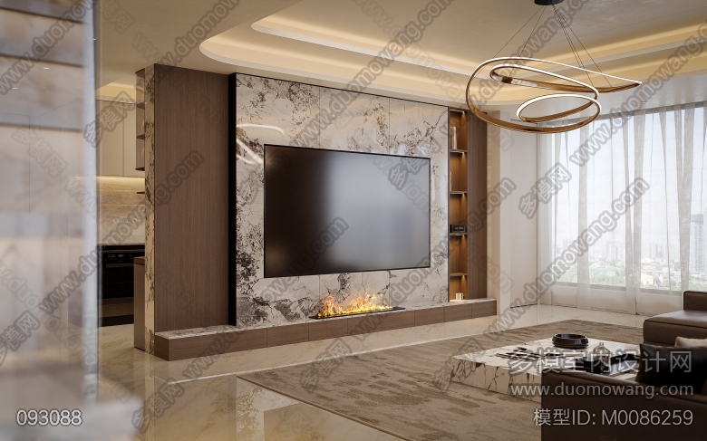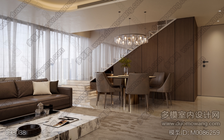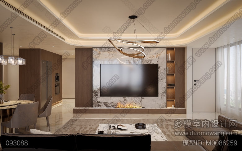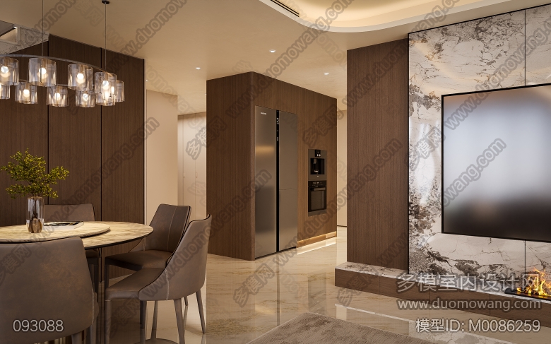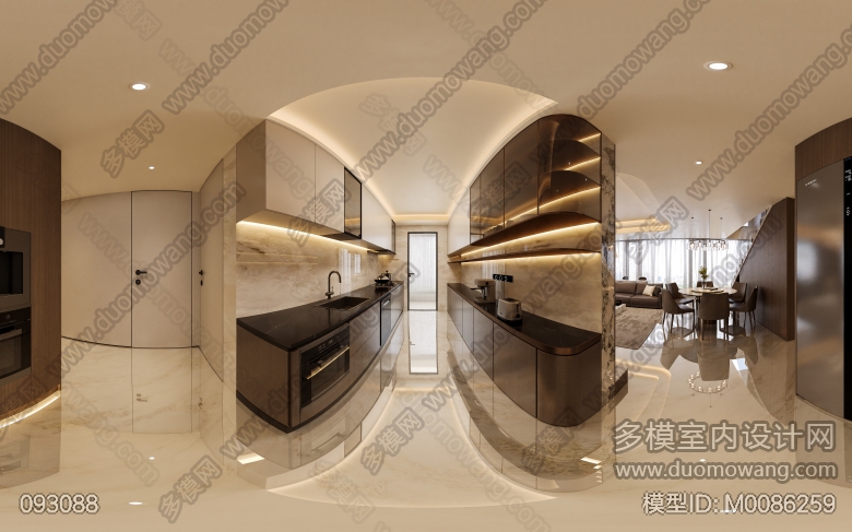 景秀峨眉现代偏意式客餐厅厨房全景2个送3张 ID:M0086259