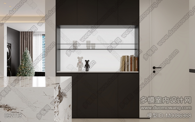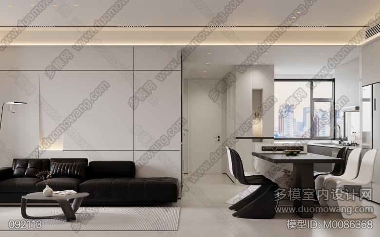 同森黑白灰极简客餐厅一个全景,送两个特写 ID:M0086368