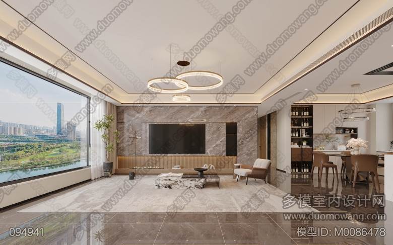 湿地公园3号客厅 餐厅 主卧 老人房 大女儿房 小女儿房 客卫改材质软装 ID:M0086478