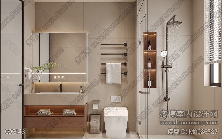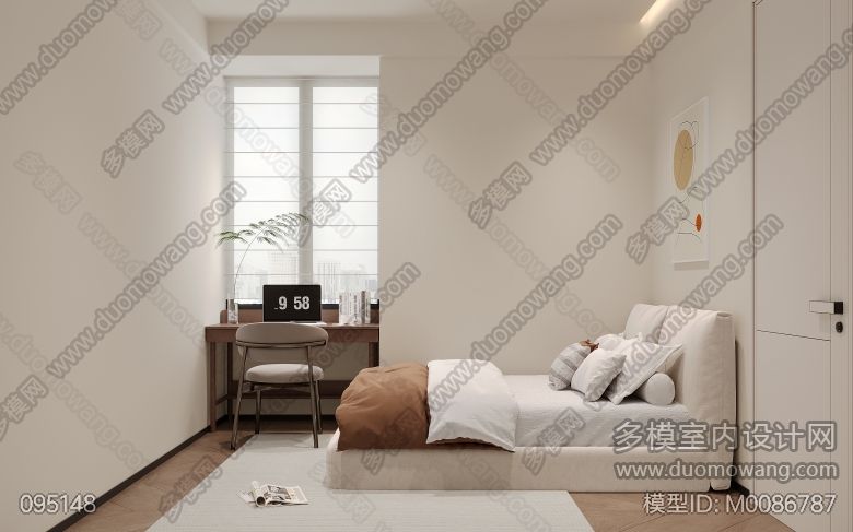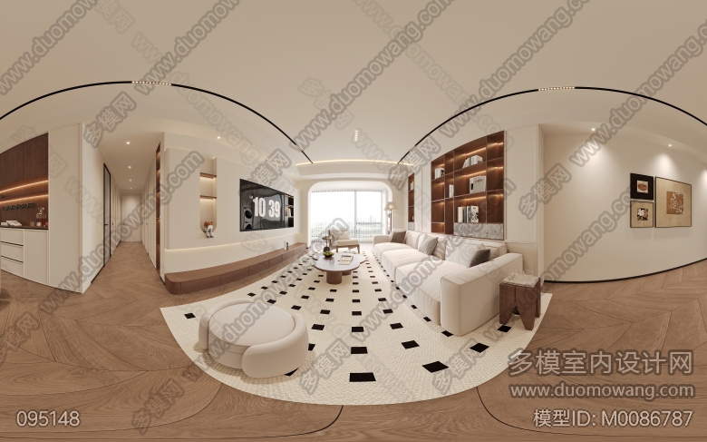 现代中古客餐厅一个全景4张静态卧室+后面加了一张公卫 ID:M0086787