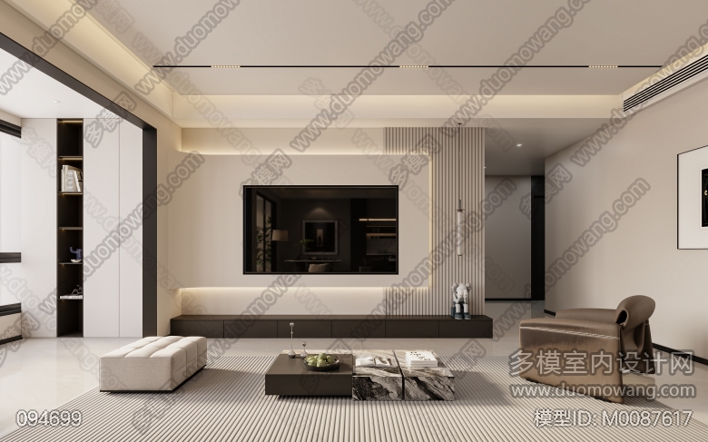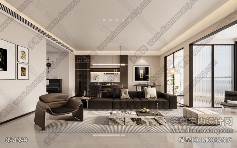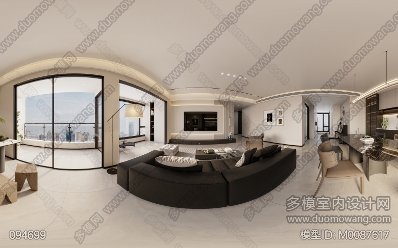 家装现代简约风格客餐厅一个全景 ID:M0087617