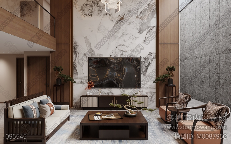 新中式负二层客厅+负一层茶室+影音室+新中式一层客餐厅+衣帽间+厨房+主卧+次卧(2023) ID:M0087956