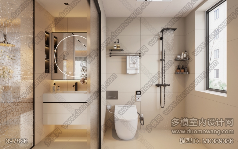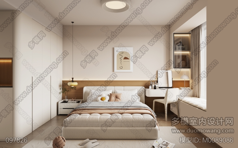 现代主卧+玄关+书房+卫生间+阳台 ID:M0089086