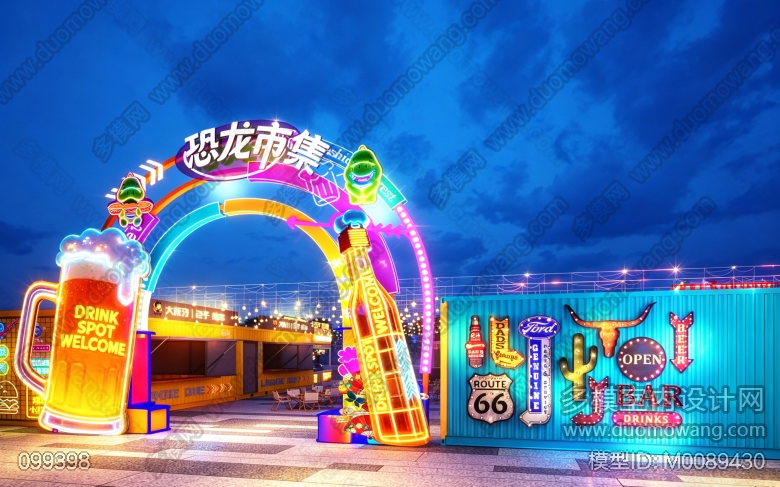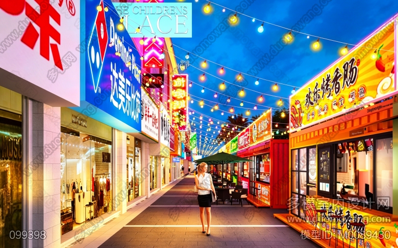 室外美食街透视图8张 ID:M0089430