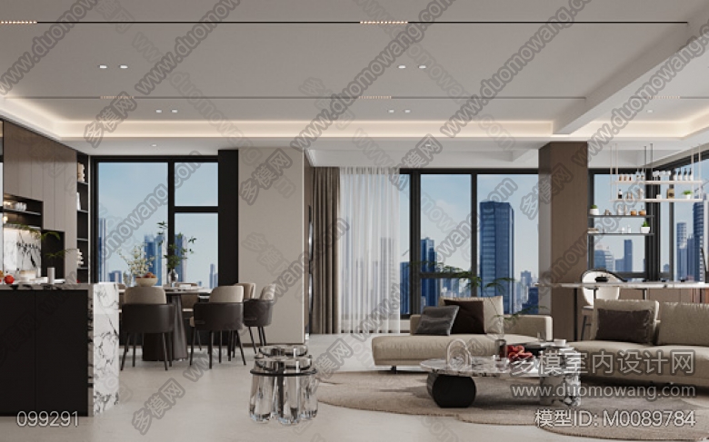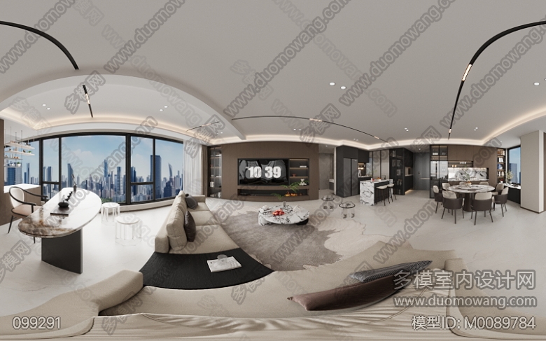 现代风格带宋氏元素客餐厅全景 ID:M0089784