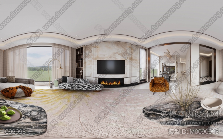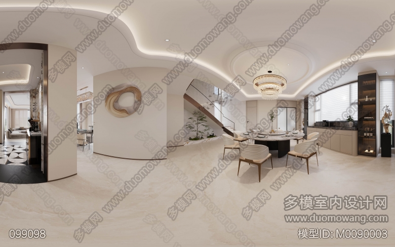 弘城厚园邓总别墅,一层客餐厅2张全景+门头厨房2单 ID:M0090003