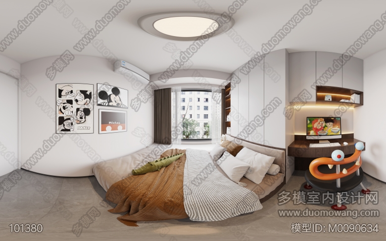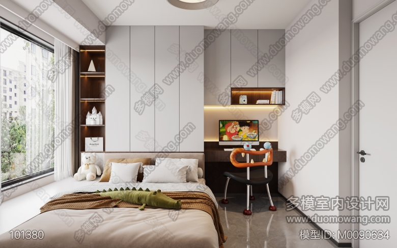 现代客餐厅+厨房+公卫+主卧+主卫+儿童房(2020) ID:M0090634