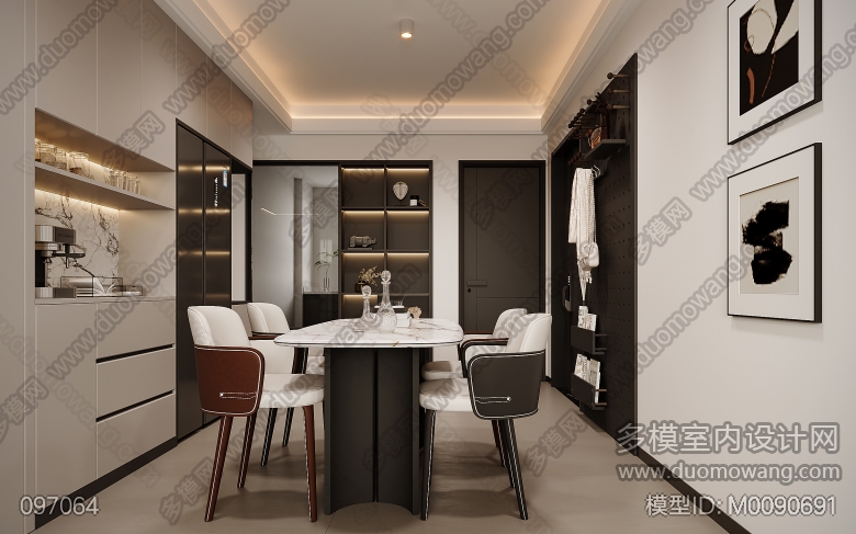 现代客餐厅全景后天对图 ID:M0090691