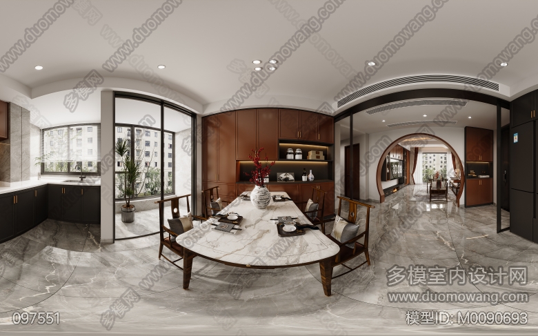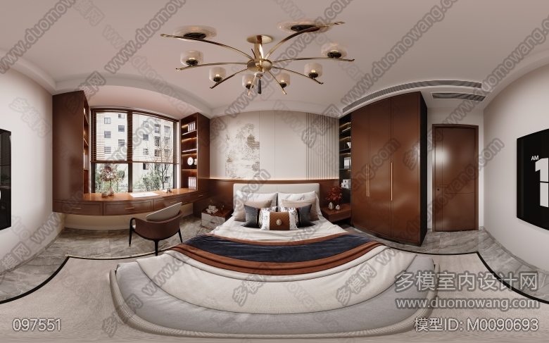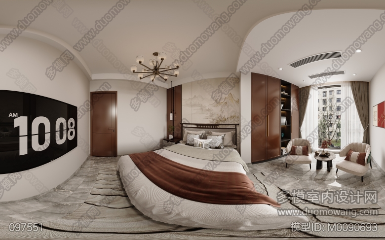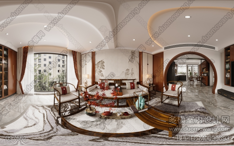 云山墅新中式客餐厅卧室全景5个 ID:M0090693
