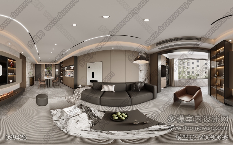 锦绣楚城杨总-现代客餐厅阳台三个全景,送3张特写 ID:M0090699