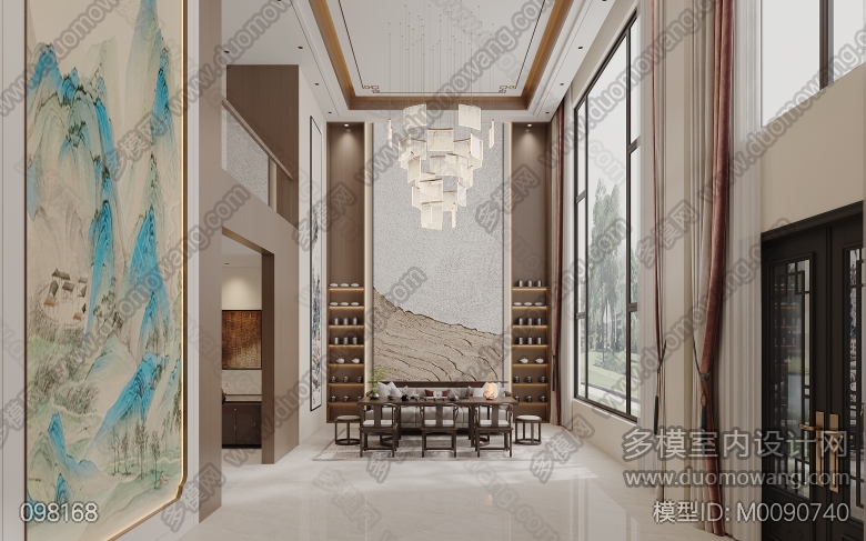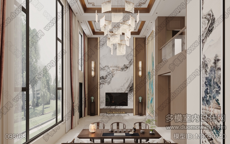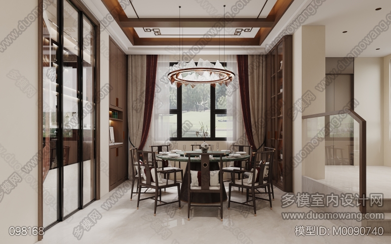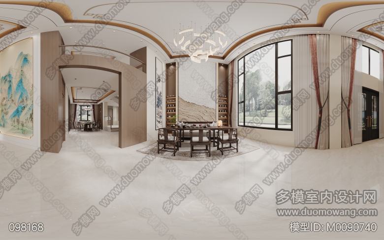 新中式客餐厅两个全景两张静态 ID:M0090740
