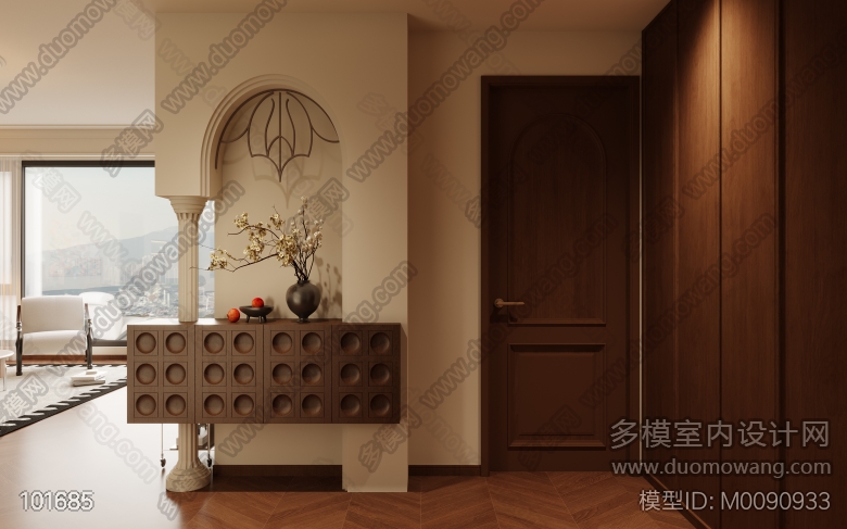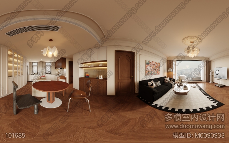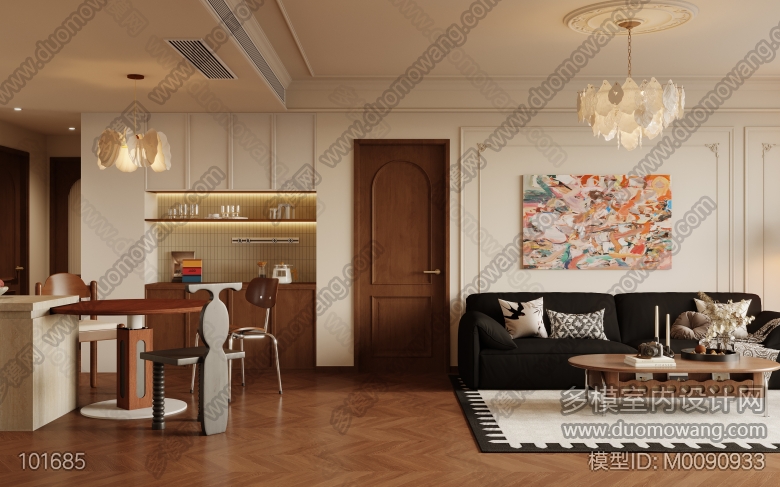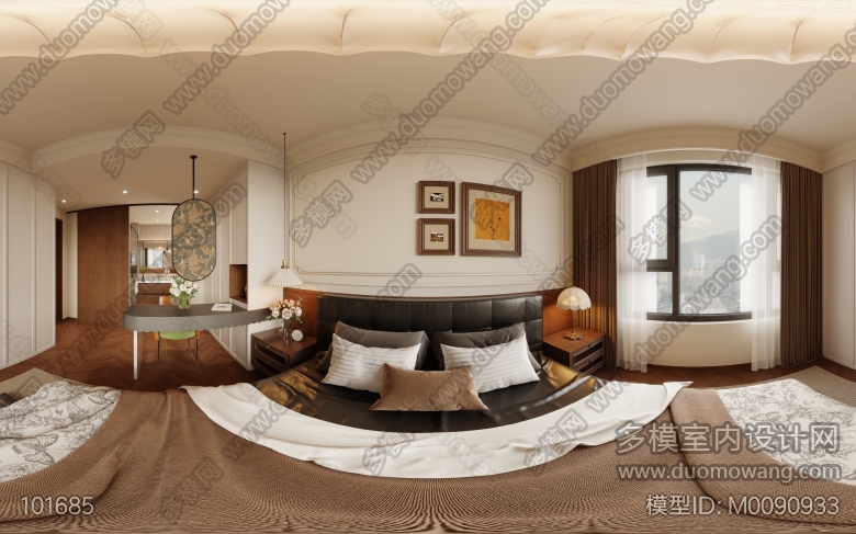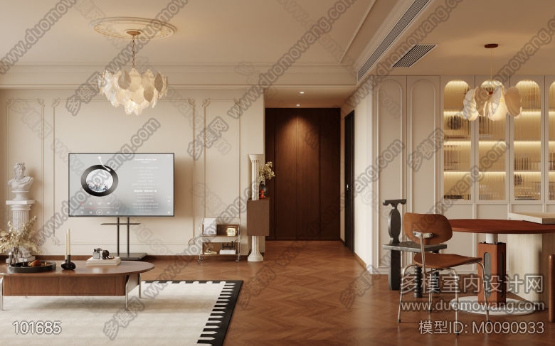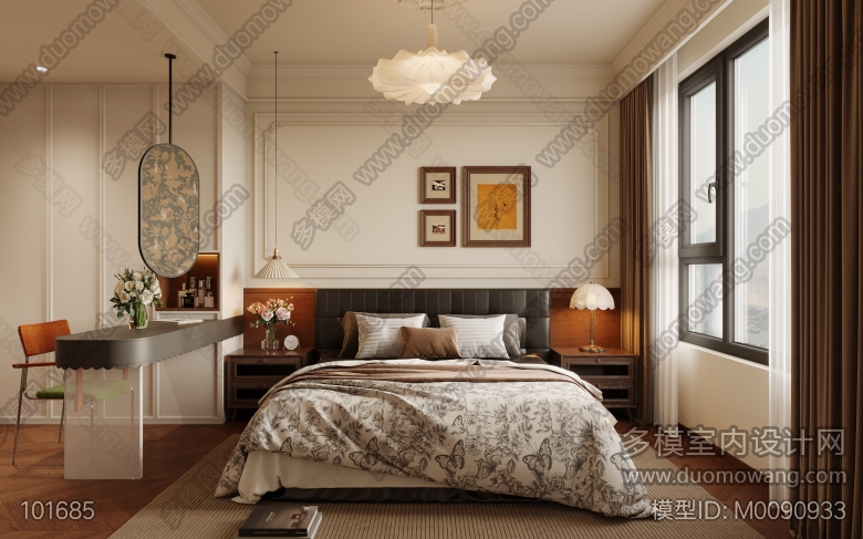法式复古客餐厅+主卧+次卧+书房改图 ID:M0090933