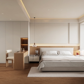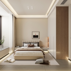 现代奶油原木风一张卧室