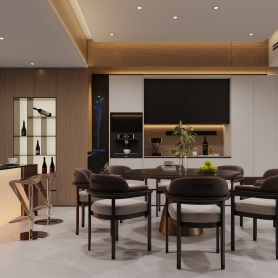现代原木风一个客餐厅全景