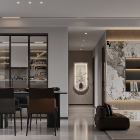 意式极简风格客餐厅全景,送两个特写单张