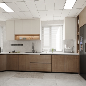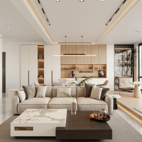 现代无主灯客餐厅全景配2个单张