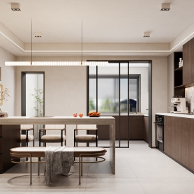 现代客餐厅+厨房+主卧+卫生间
